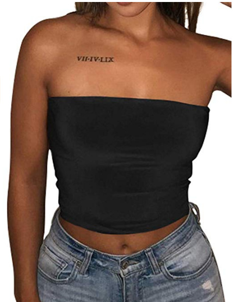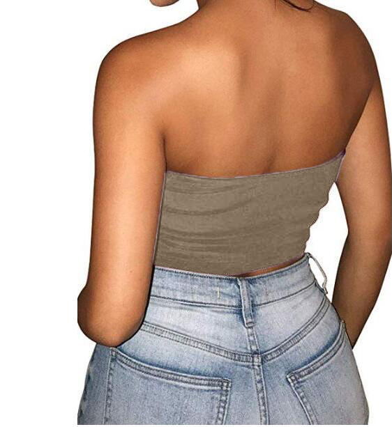 Step into the spotlight with our sexy and slim-fit strapless T-shirt, designed for the modern woman who loves to express her style. Crafted from luxurious milk silk, this top is as comfortable as it is chic, making it a must-have addition to your wardrobe.